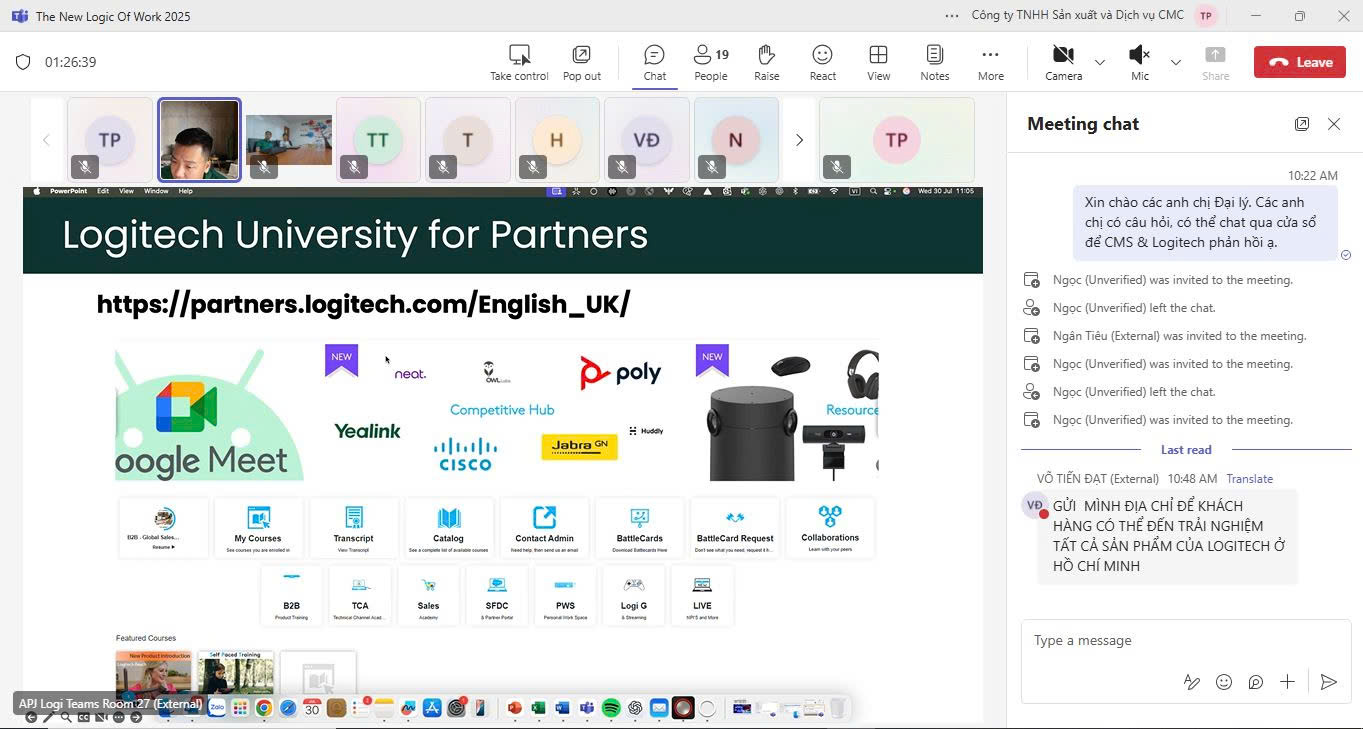 Ngày 30.07.2025, CMS và Logitech tiếp tục hành trình kết nối đối tác công nghệ trên toàn quốc bằng hình thức webinar hybrid, thu hút sự tham gia của đông đảo đại lý từ cả hai miền Bắc – Nam.